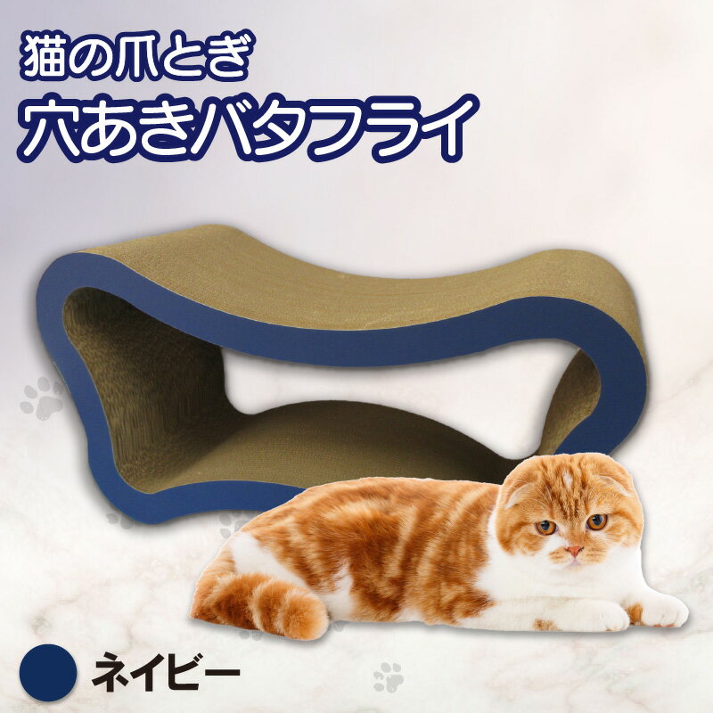レビュー【ふるさと納税】猫の爪とぎ 穴あきバタフライ(カラー:ネイビー) クレアル 猫の爪とぎ 猫 段ボール 日本製 国産 ペット 爪とぎ 丈夫 愛猫へのプレゼントに 猫用用品 ペットベッド ショップ:愛知県常滑市